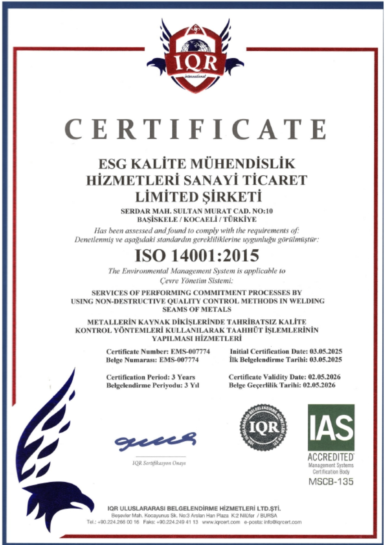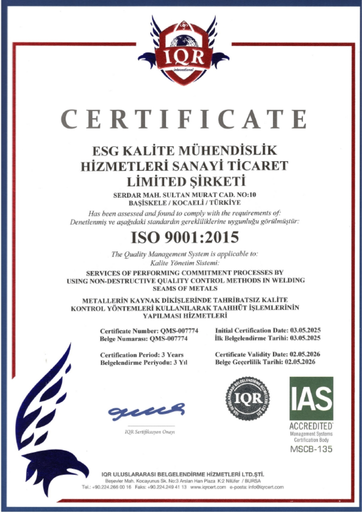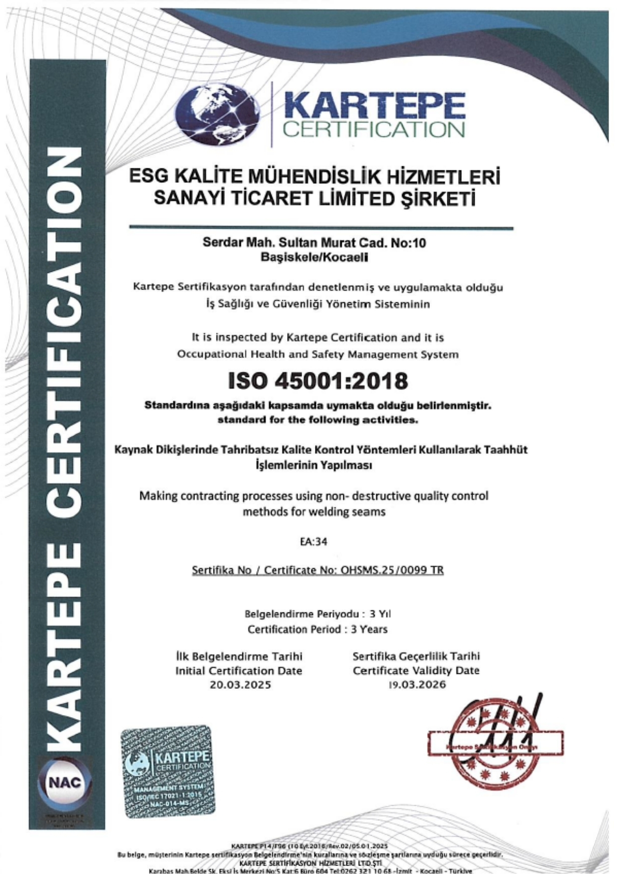 Tahribatsız Muayene alanında gerçekleştireceği hizmetleri tarafsızlık ve bağımsızlık ilkeleri doğrultusunda gerçekleştireceğini,